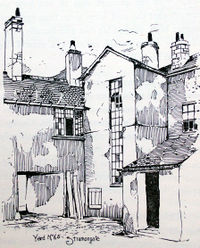"Returning to the opposite side of the road, I cannot pass by without a word of comment upon that most choice bit of grouping that can be seen down Yard 65. My illustration gives no adequate interpretation of its charm, for the soft colouring of each shapeless stone, enriched by the golden stain of time and glowing beneath the warmth of a mid-day sun, cannot be depicted by hand drawn-out lines of black.